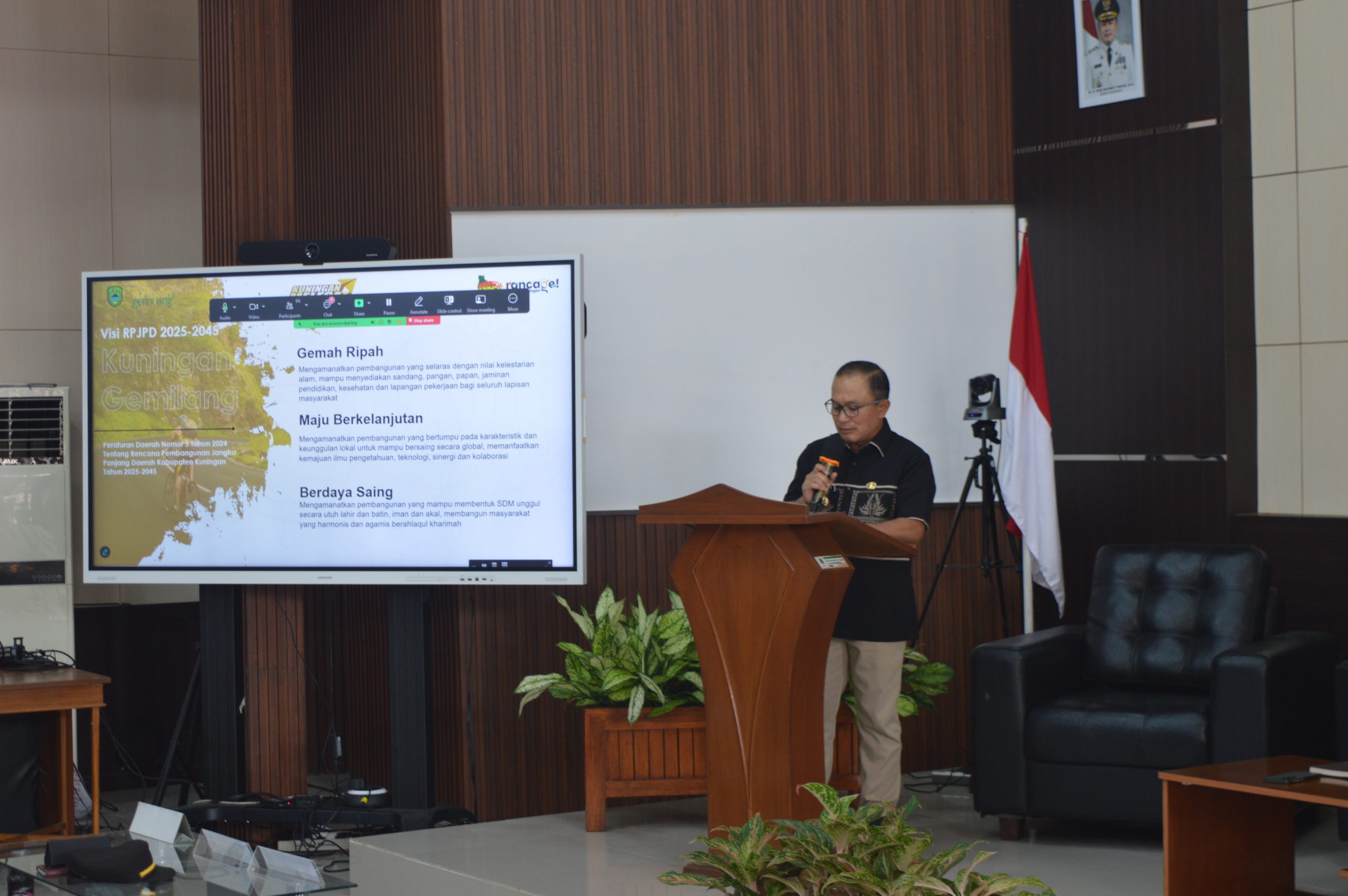 Kuningan, Jawa Barat – Berbagai unsur kelompok masyarakat, asosiasi dan akademisi dilibatkan dalam Forum Konsultasi Publik untuk Penyusunan Rancangan Awal Rancangan Pembangunan Jangka Menengah Daerah (RPJMD) Tahun 2025-2029. Dalam forum ini, Bupati Kuningan menyampaikan Isu Strategis 2025-2029 hingga Visi Misi Kuningan Melesat, Rabu (20/3/2025) di Aula Bappeda Kabupaten Kuningan.